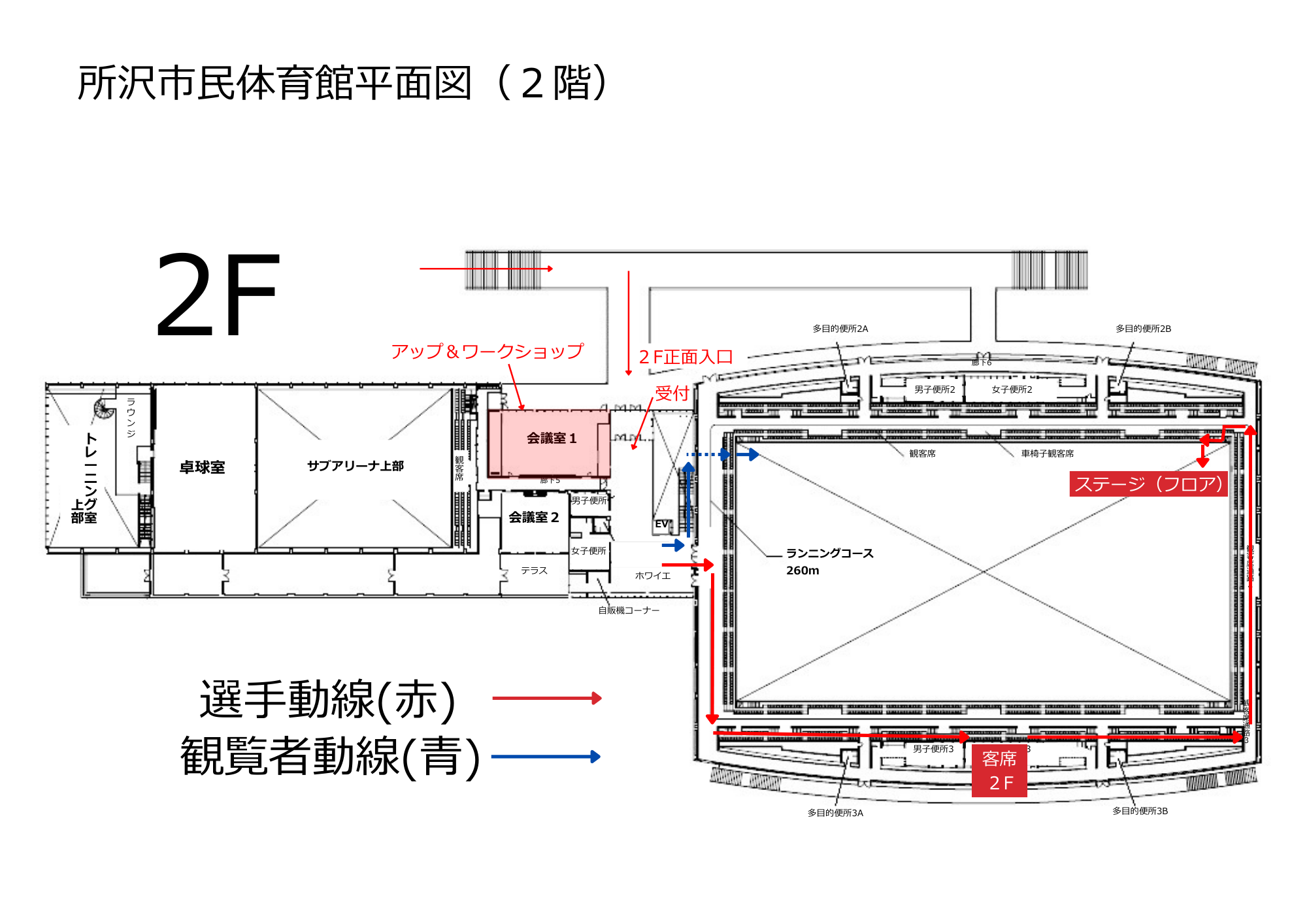 ・2F自由席席(正面側)のエリアにチーム毎に着席をお願いします。 |